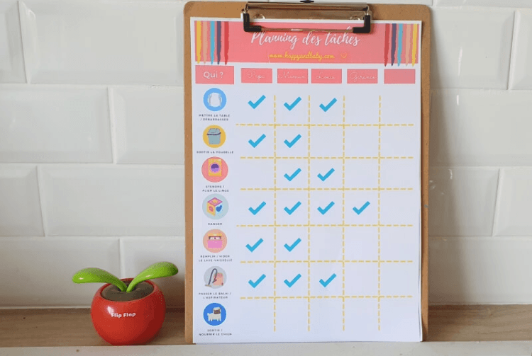 Un tableau facile à utiliser et à personnaliser pour toute la famille. Chacun participe et sait ce qu'il a à faire = moins de charge mentale pour les parents !